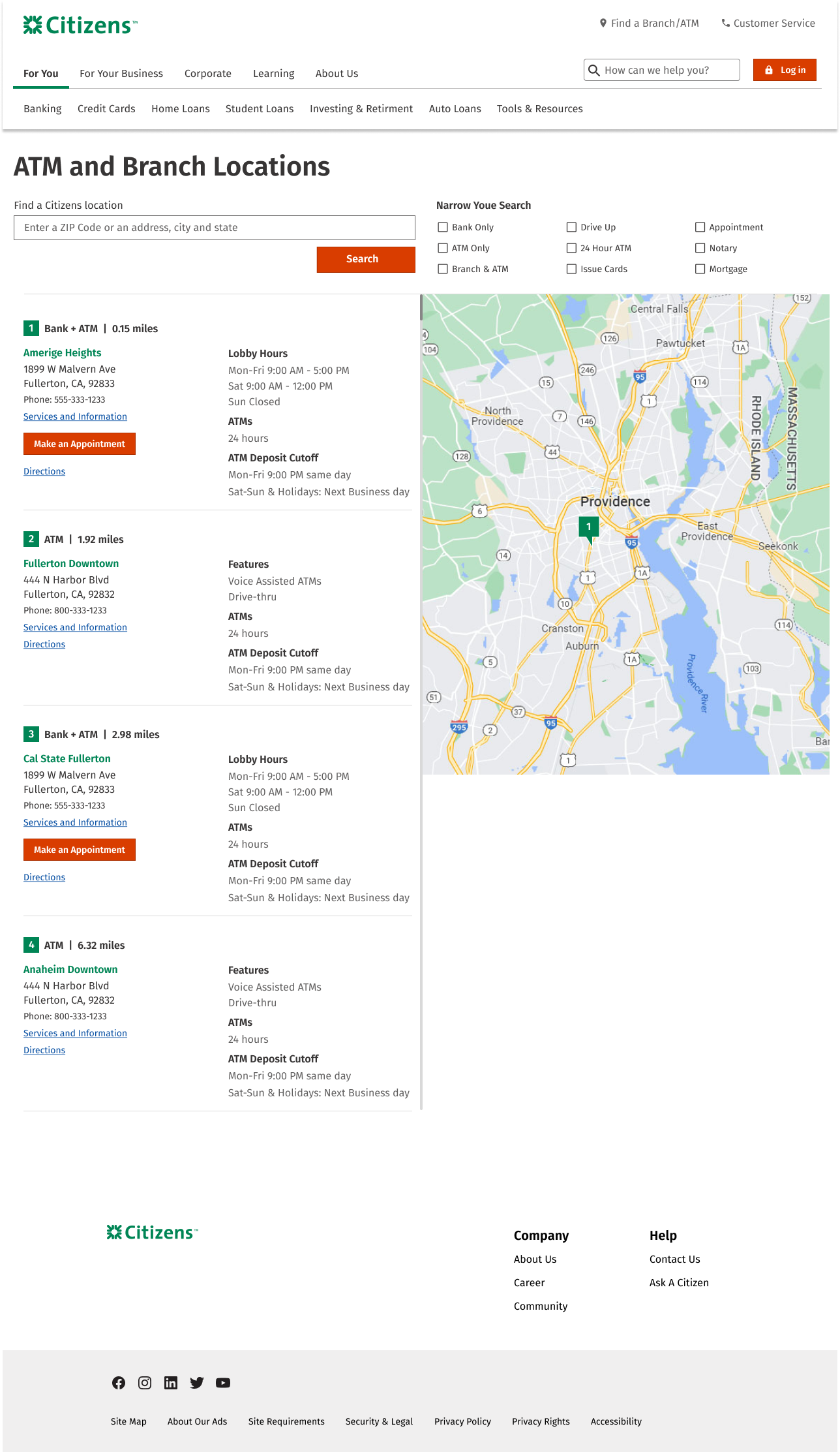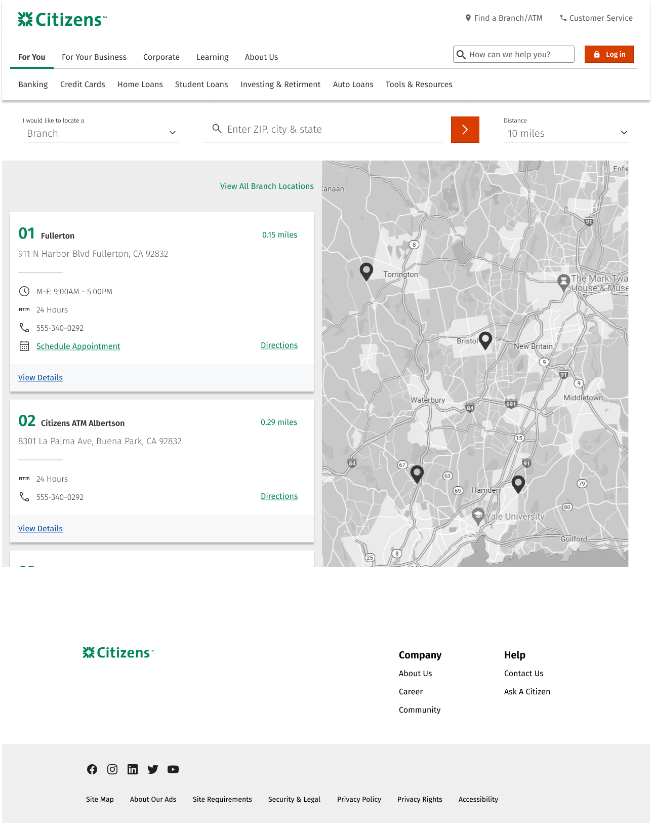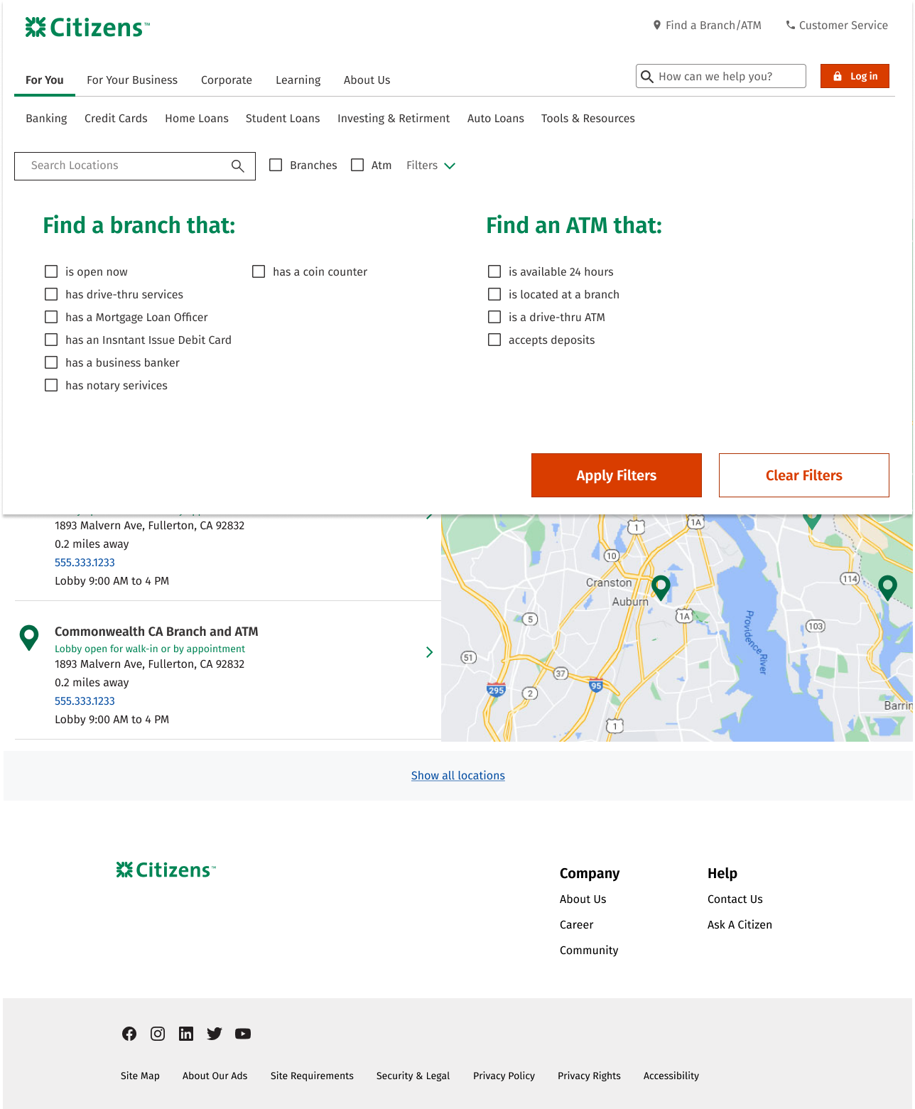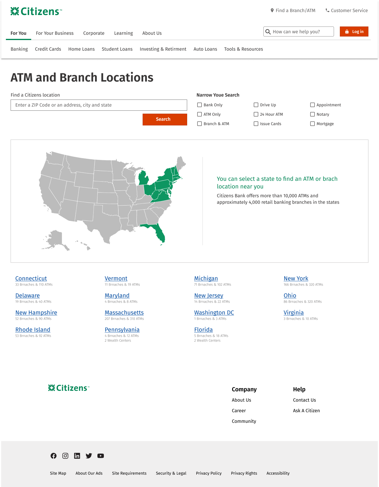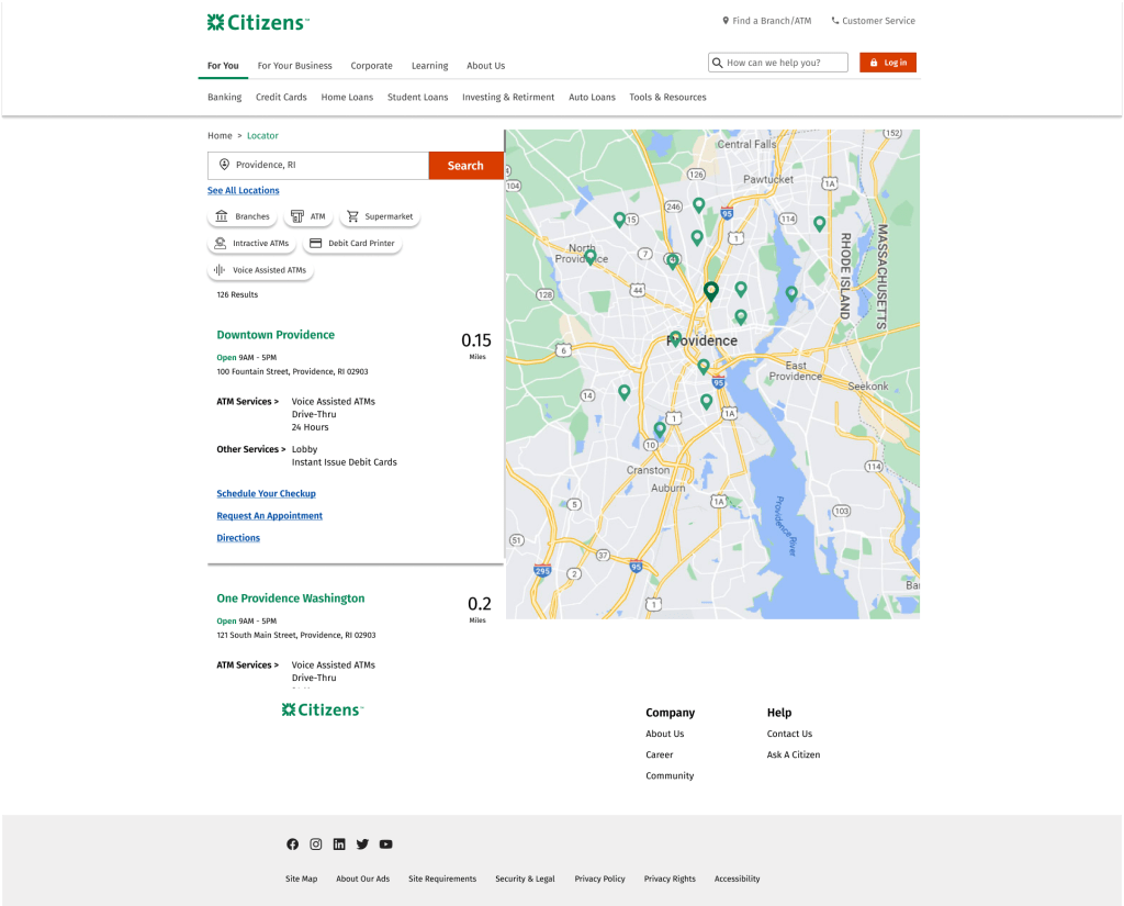 This is a renewal project for the company’s branch locator. To make a final decision, I applied various competitors’ structure and flow to Citizen’s design system. There are total of 15 different concept following the top banks’ sorting component and maps. The concepts are inspired by top banks such as Bank of America, Chase, Wells Fargo, US Bank, TD Bank, Hana Bank, Citi Bank and more…