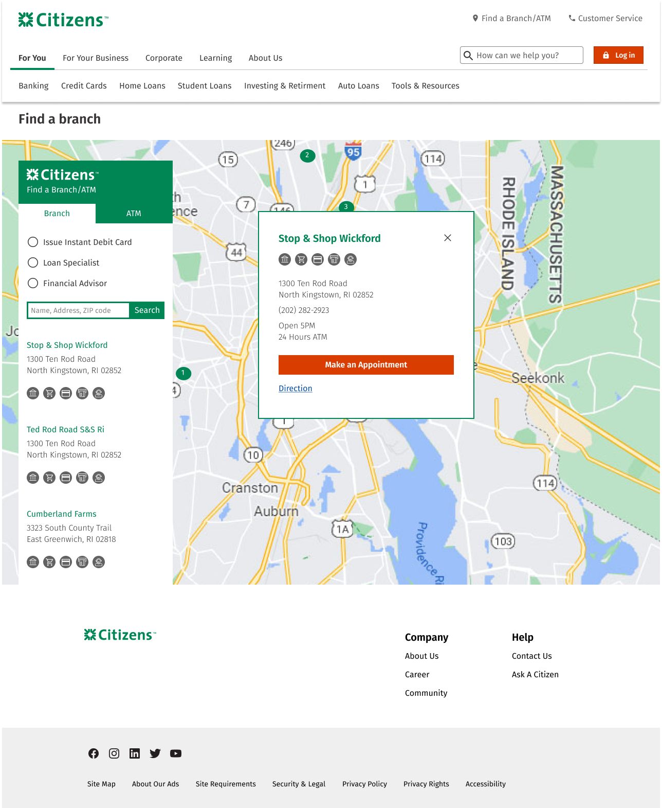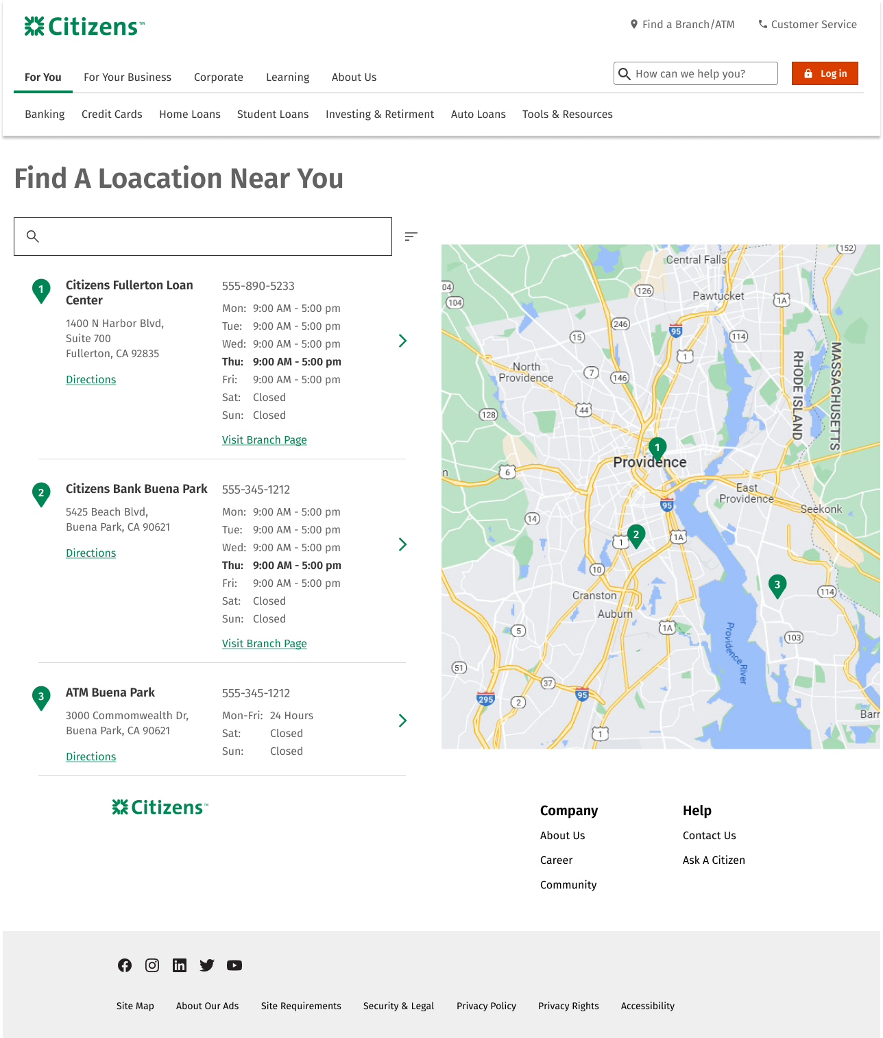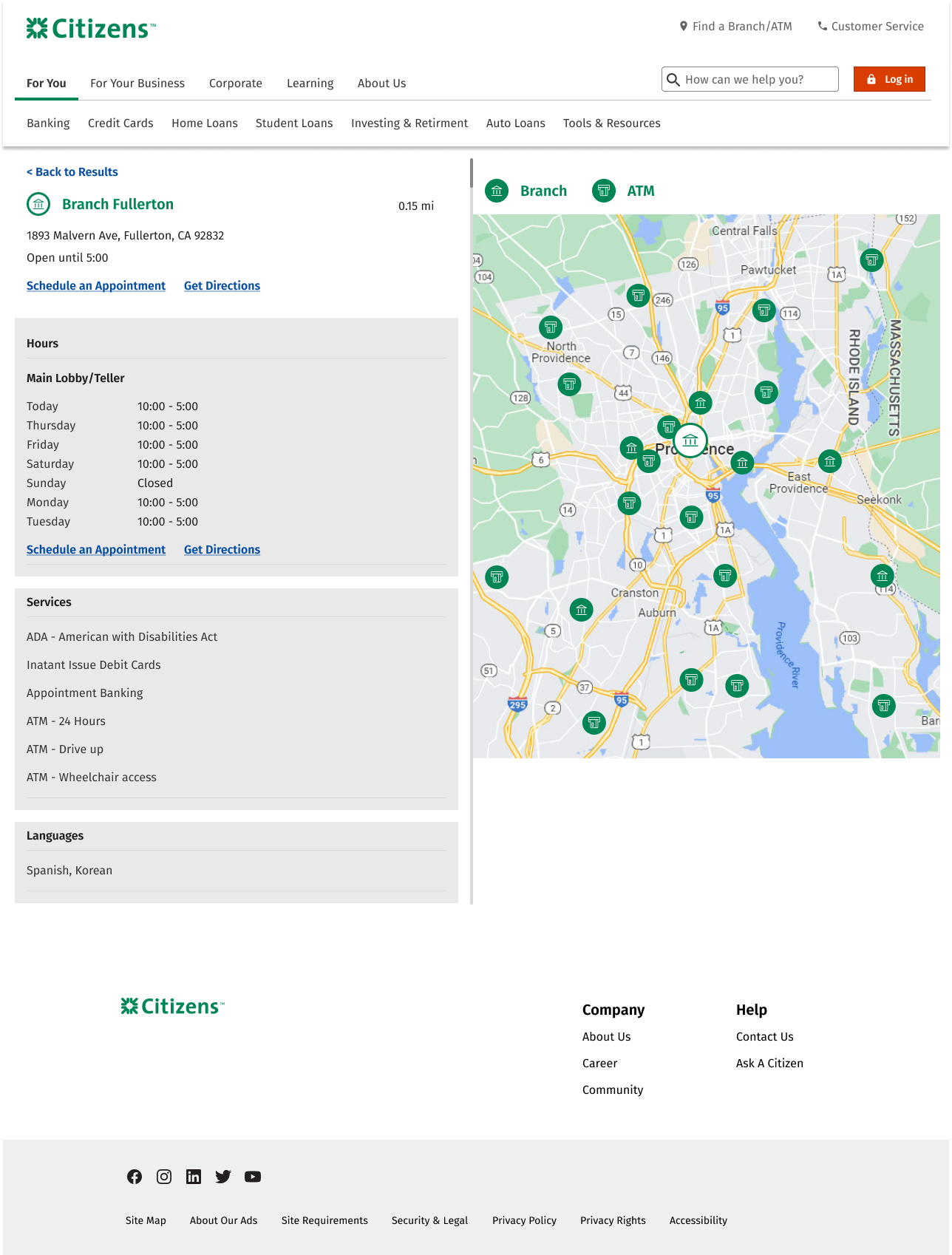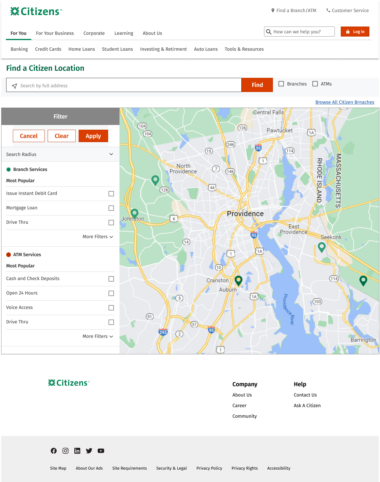 This is a renewal project for the company’s branch locator. To make a final decision, I applied various competitors’ structure and flow to Citizen’s design system. There are total of 15 different concept following the top banks’ sorting component and maps. The concepts are inspired by top banks such as Bank of America, Chase, Wells Fargo, US Bank, TD Bank, Hana Bank, Citi Bank and more…