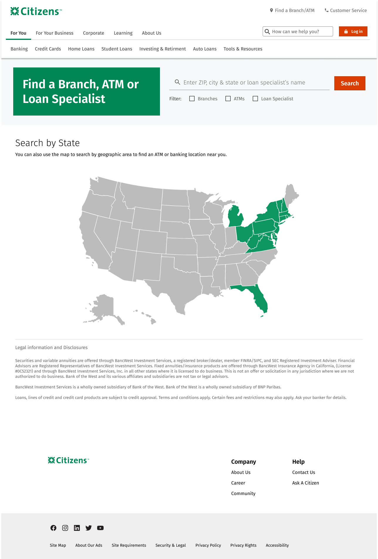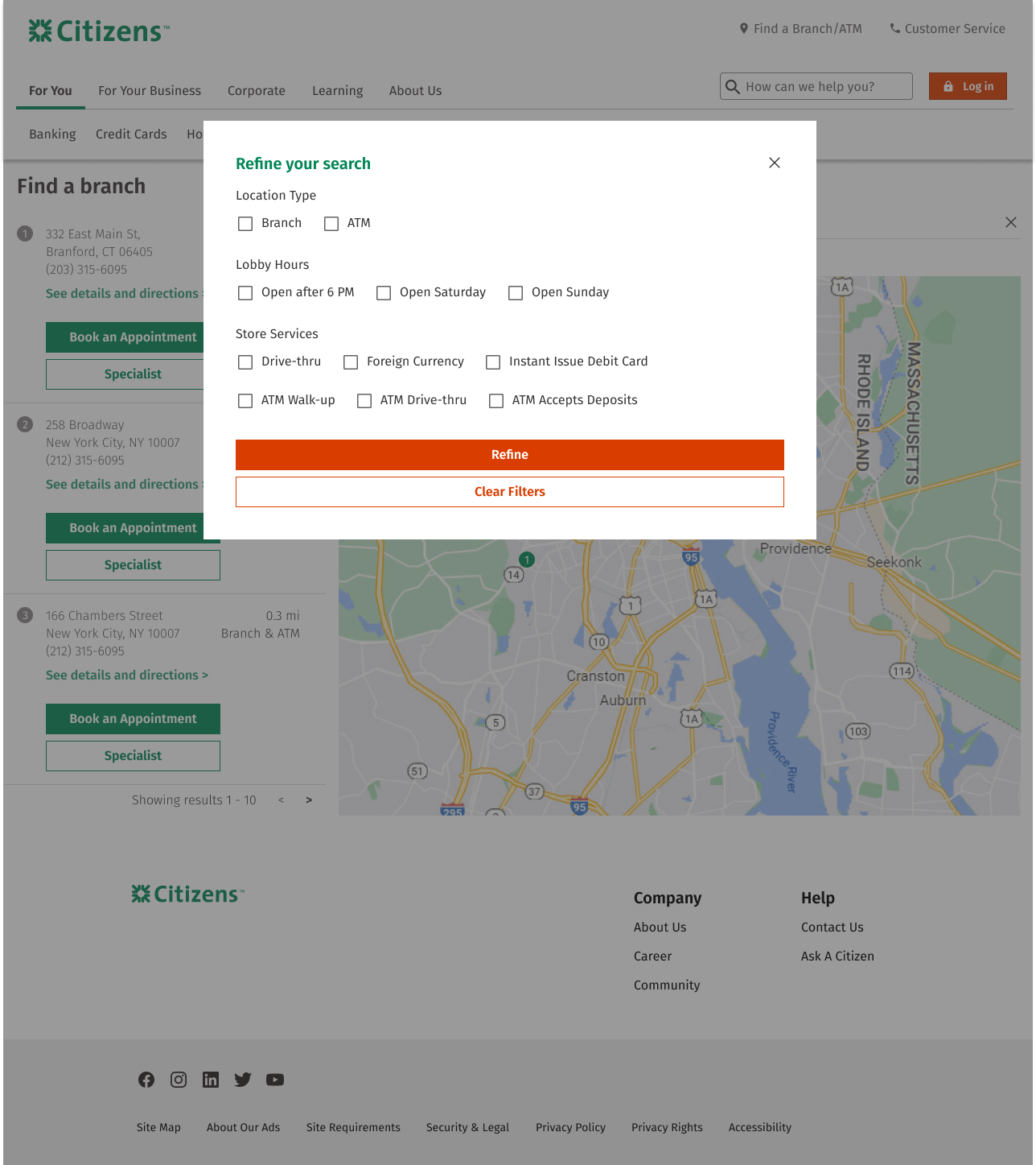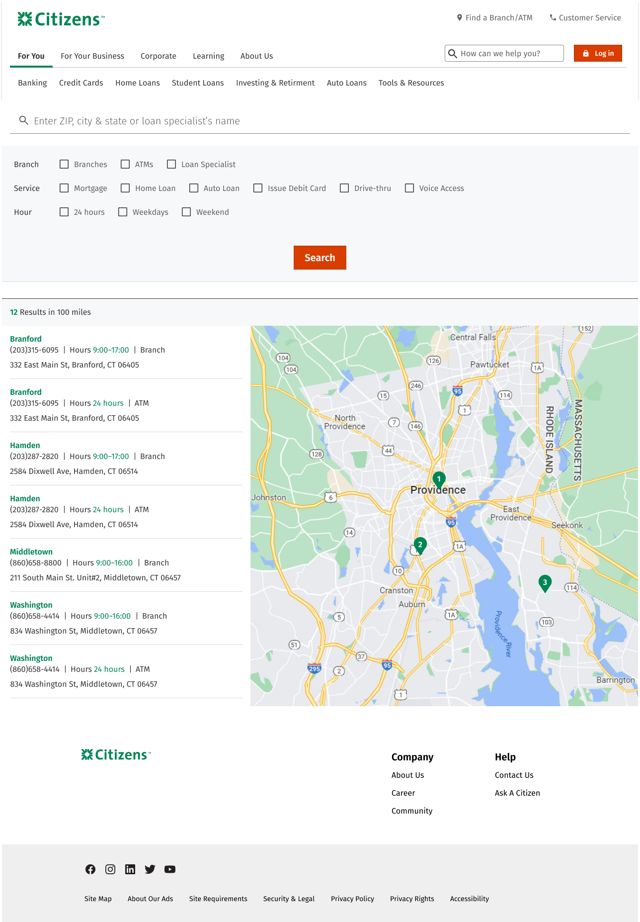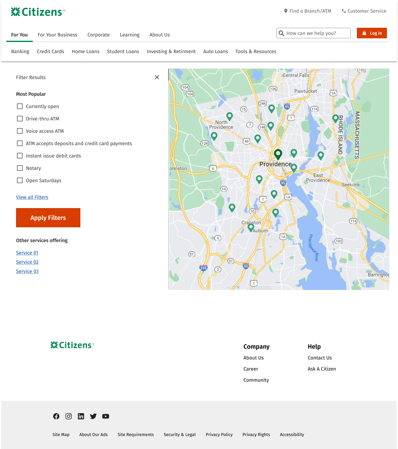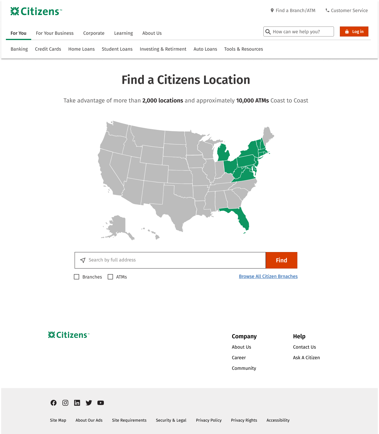 This is a renewal project for the company’s branch locator. To make a final decision, I applied various competitors’ structure and flow to Citizen’s design system. There are total of 15 different concept following the top banks’ sorting component and maps. The concepts are inspired by top banks such as Bank of America, Chase, Wells Fargo, US Bank, TD Bank, Hana Bank, Citi Bank and more…